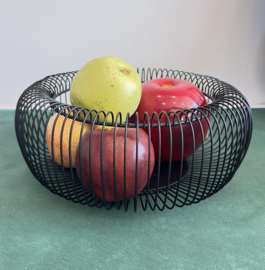 Φρουτιέρα μαύρη μεταλλική με ιδιαίτερο μίνιμαλ σχεδιασμό .