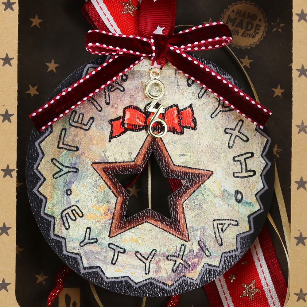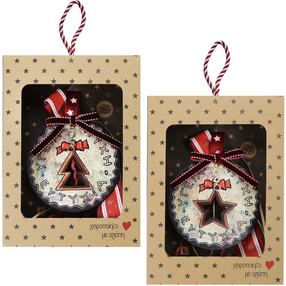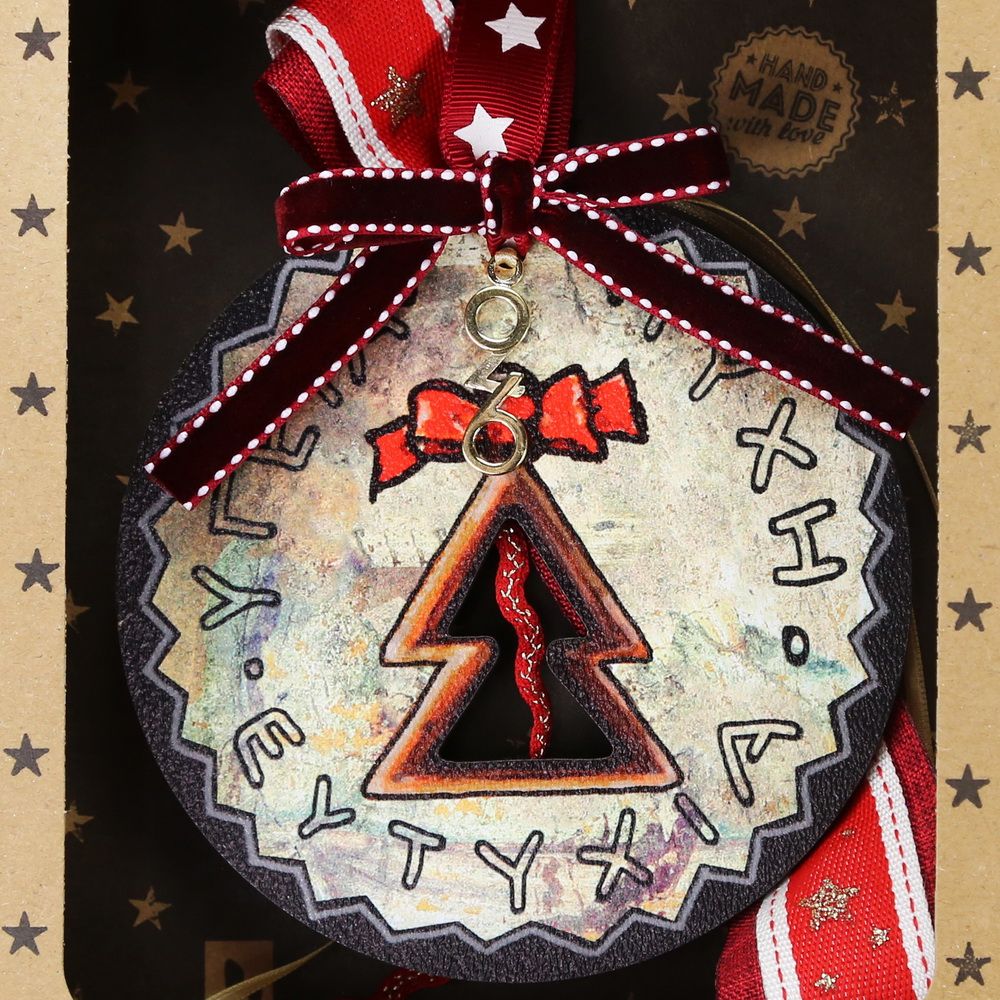 Χειροποίητο γούρι με ένα ξύλινο στρογγυλό στολίδι με ευχές και ένα κομμένο σχήμα στο κέντρο. Οι κόκκινες κορδέλες και τα κορδόνια κάνουν ένα έντονο κοντράστ με εντυπωσιακό αποτέλεσμα. Θα το παραλάβετε πάνω στο καρτολίνο του και μέσα στο φανταστικό μας κουτί από οικολογικό χαρτί. Ένα τέλειο δώρο για την Πρωτοχρονιά! • Χειροποίητο • Υλικό: Ξύλο • Διάσταση:~33εκ.
